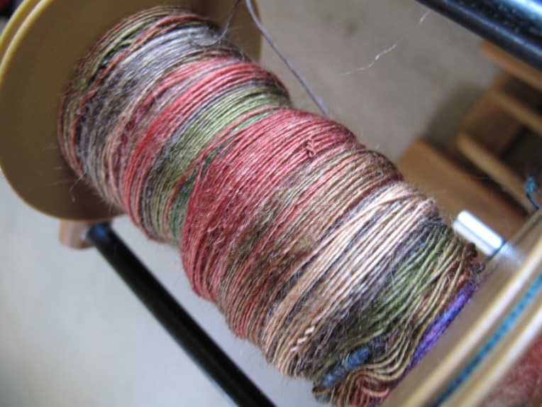 Instead of sewing, I did some spinning and I knitted on my flying saucer socks. I’m spinning some of Kathy’s Fibres: BFL/Kid Mohair, to make 3 ply socks. This is my first attempt at spinning for socks, I’m hoping it won’t be a complete balls-up. Afterall, I’ve joined The Thylacine’s Sock Fibre Club, there is more sock spinning in my future.