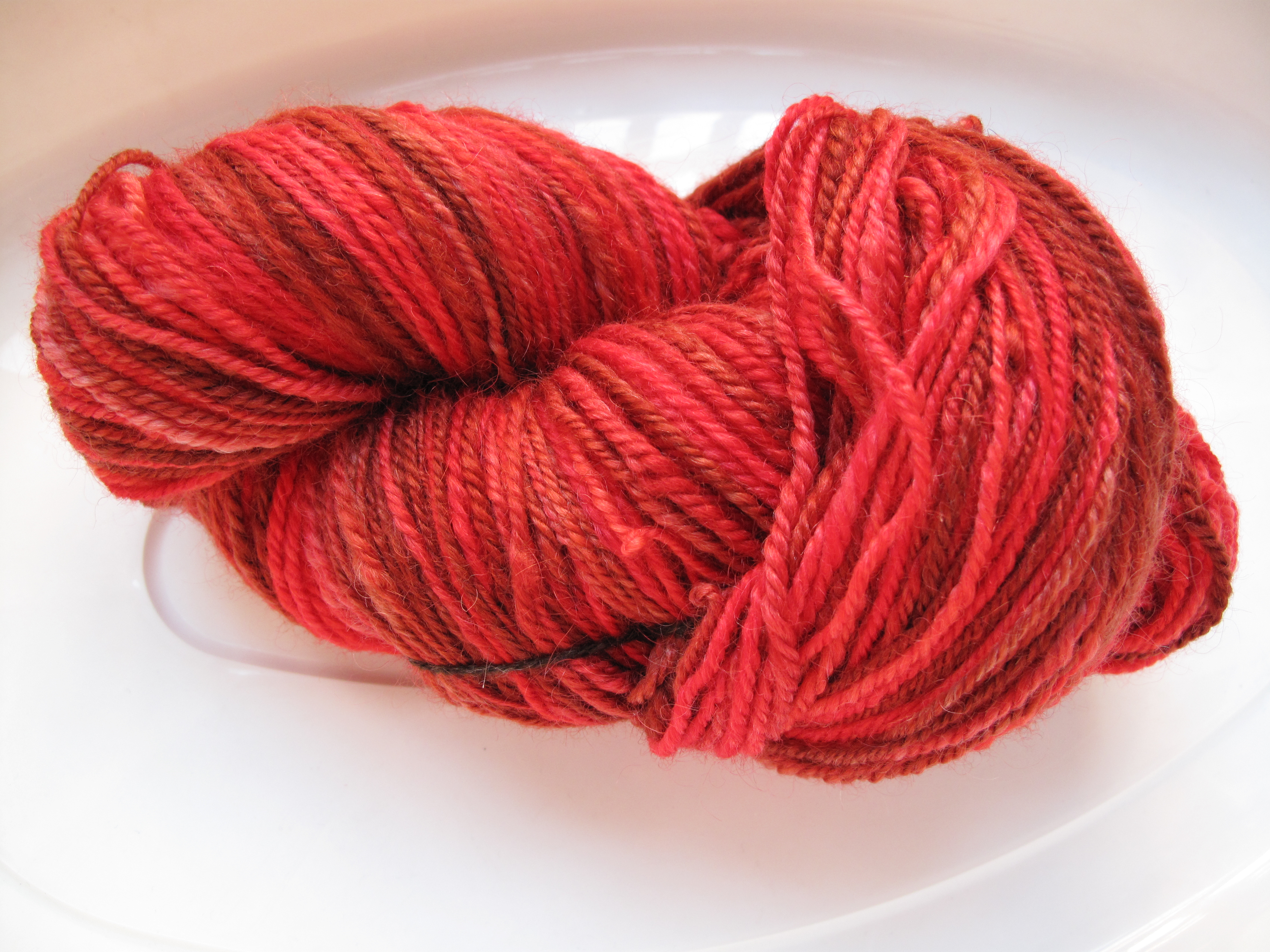 A number of weeks ago I received my second installment of the Thylacine Sock Fibre Club. The great thing about the club (apart from the quality of the fibre and dyeing) is Megan chooses different blends each month that have good sock-making properties. The March colourway was ‘Sunburn’, made up of 80% Superwash BFL, 10% Mohair and 10% Silk. The colour was more variegated than the first month which I really like a lot. I really enjoyed spinning this blend. I was lucky enough to score an extra 50gms from Melanie taking my total to 200gms for some super long socks.