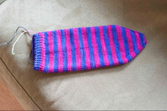 I still struggle with having more than one thing on the needles at any one time… I’ve completed Sharon’s first striped sock (minus the afterthought heel) and have begun the next. I’m hoping to finish these up before I get stuck into the blanket.