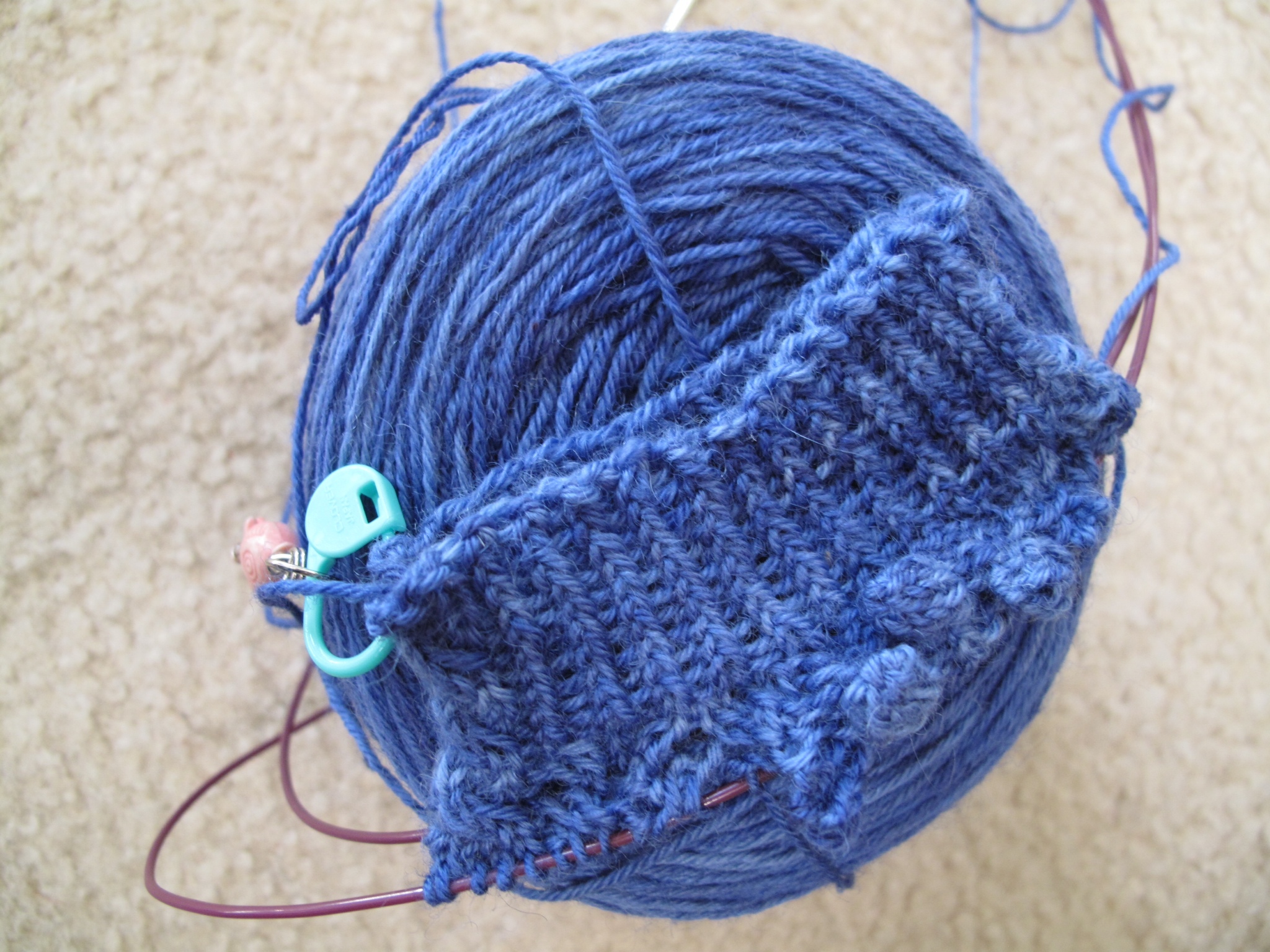 I have some pitiful progress shots for you. Firstly my new Lacey socks… did I mention they have bobbles on the cuffs, lots of the little b&$!@r)$. Once I pass these it should be smooth sailing.