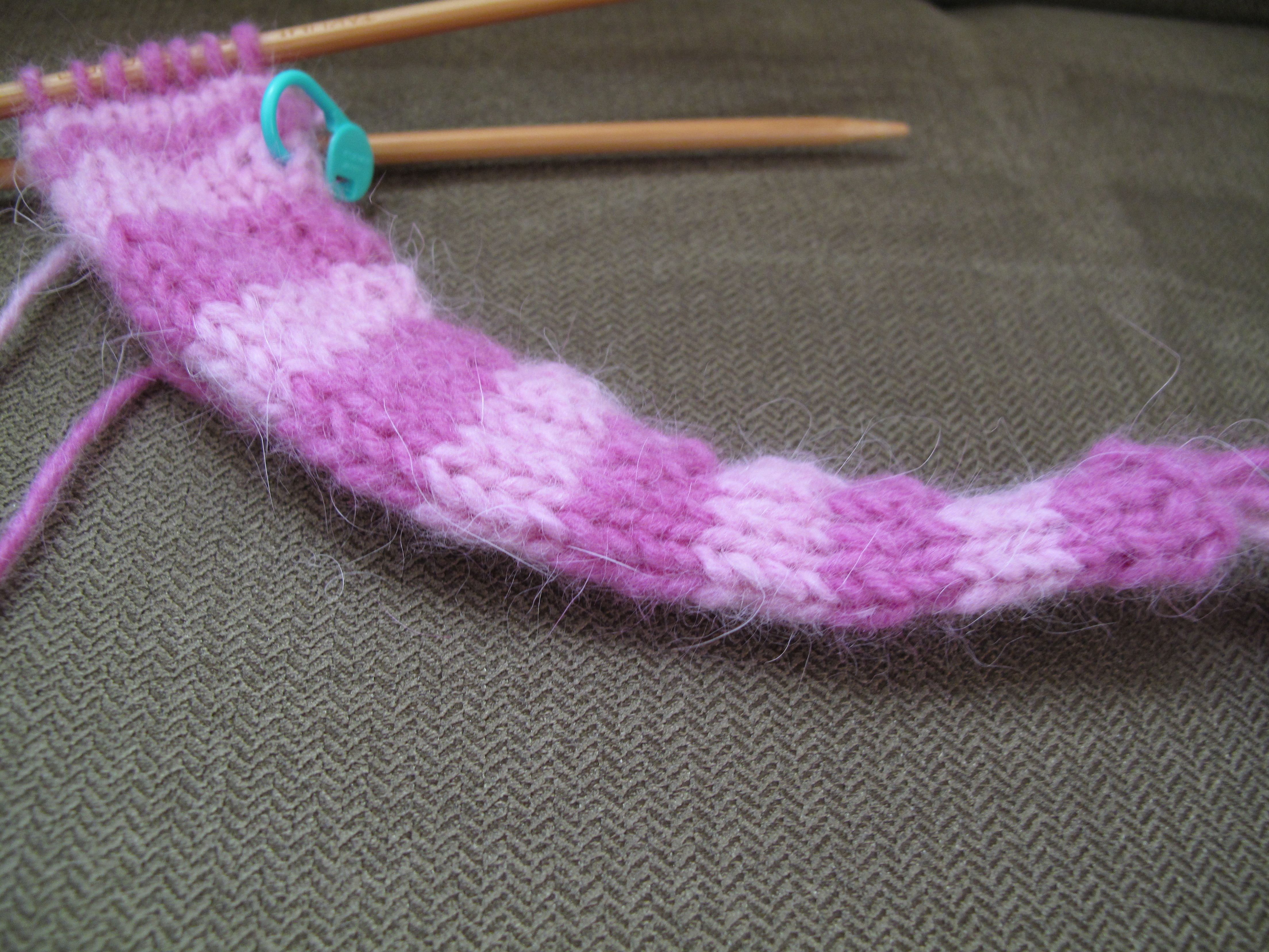 So I’ve cast on ‘Candy Stripes Kerchief’ by Kat Coyle today, maybe 5 or more years after it’s originally inception. I’ve changed the pattern so that I’m working in a tube rather than flat stocking stitch that curls. I have double the yardage to do this. I loved the design when I first saw it, quite Dr. Seuss like. And stripes are in.