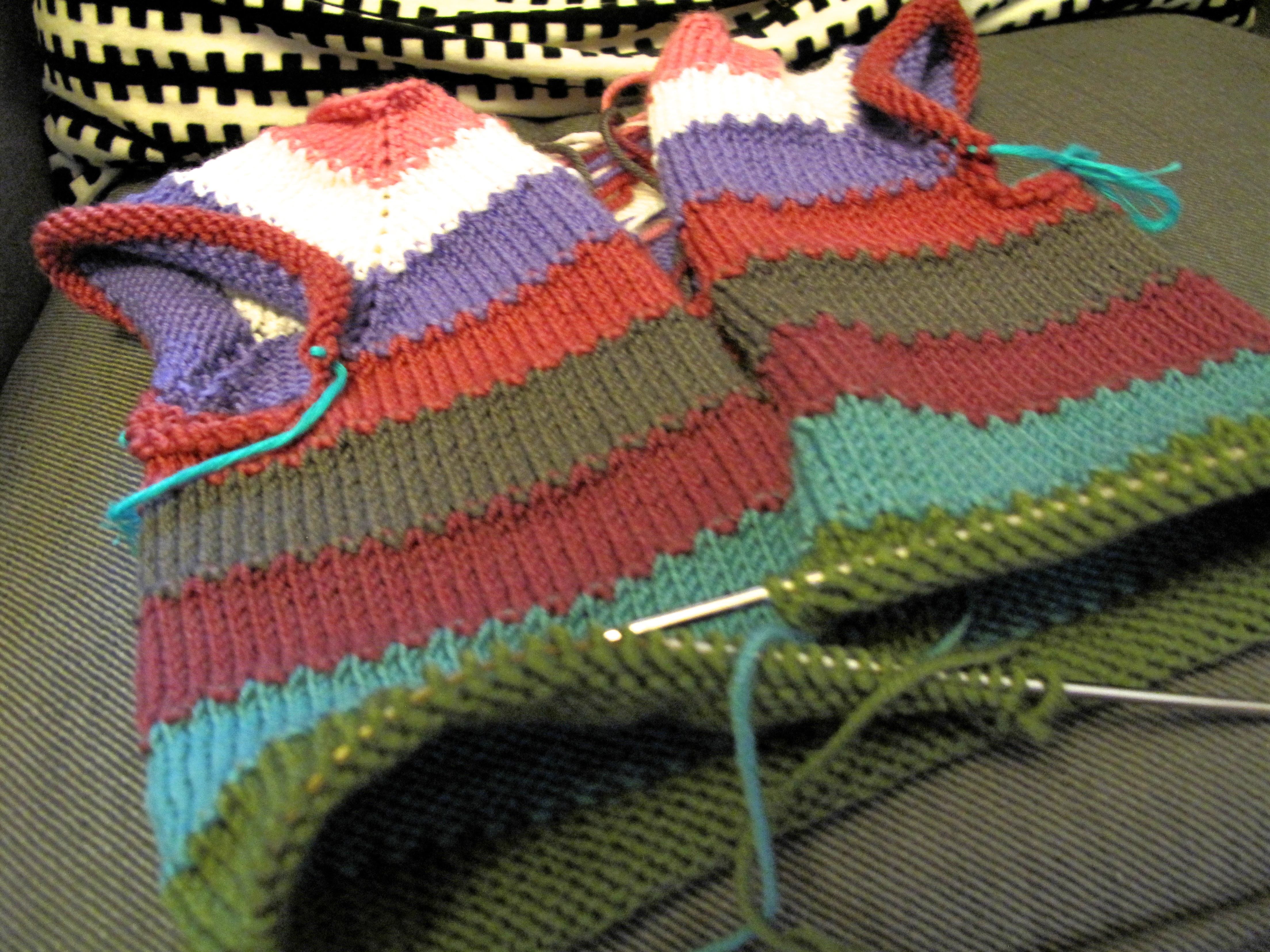 I’m just finishing off the applied i-cord tie around the neckline, then I’m in sleeve-land, I’m hoping I’ll feel more than MEH for the cardigan once it’s completed.