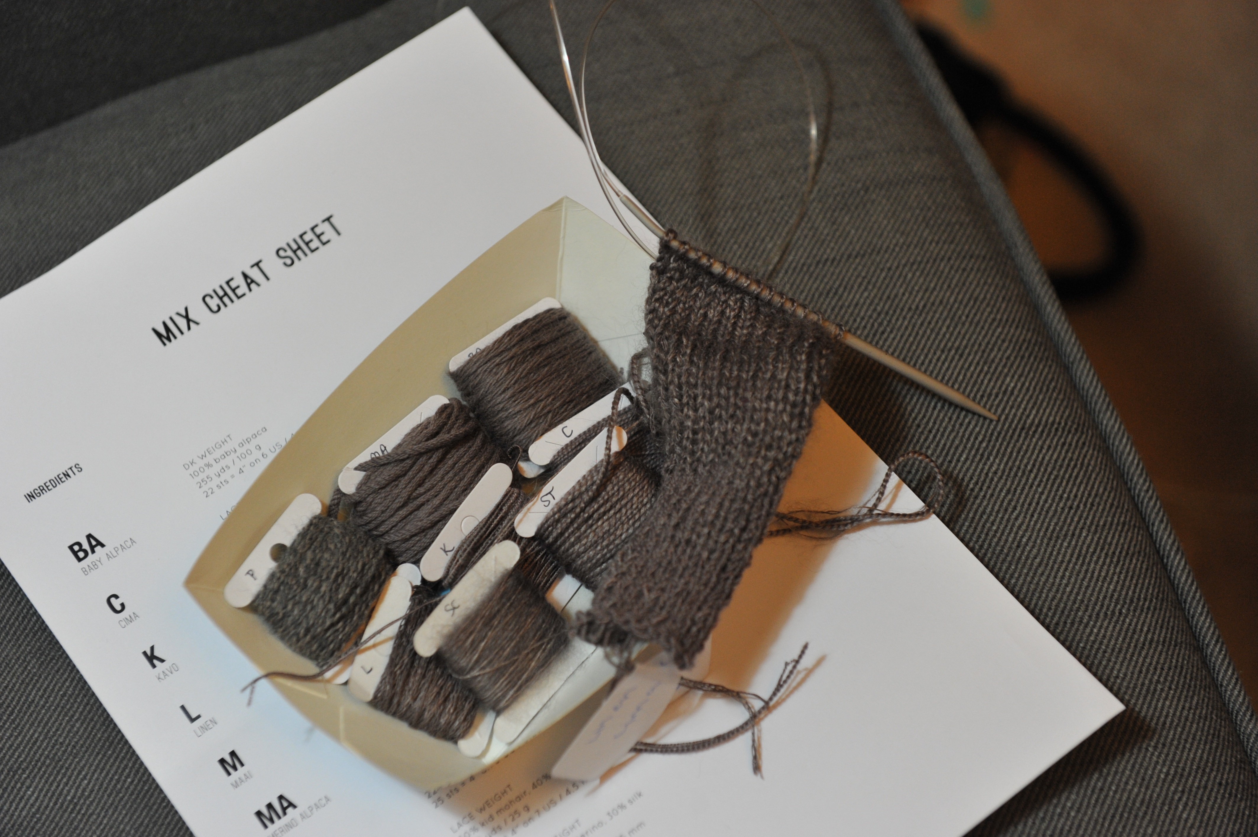 It was a lot of fun. Sharron the store owner did an amazing job in the organisation of it. Down to coding all of our little samples of yarn to the hand-out with all the formulas for putting the yarns together. Genius! I am in awe of it all. I didn’t make a rash buying decision, although I did come pretty close, hello Aperture. Just now, I’m enjoying doing the swatching of it all and pondering the possibilities. I see a lot of Shibui in my future.