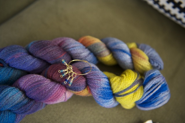 Thank you to Christine for my lovely new project bag, a great match for my new project! I’m very lucky to have sewers in my life, because I completely suck at that.