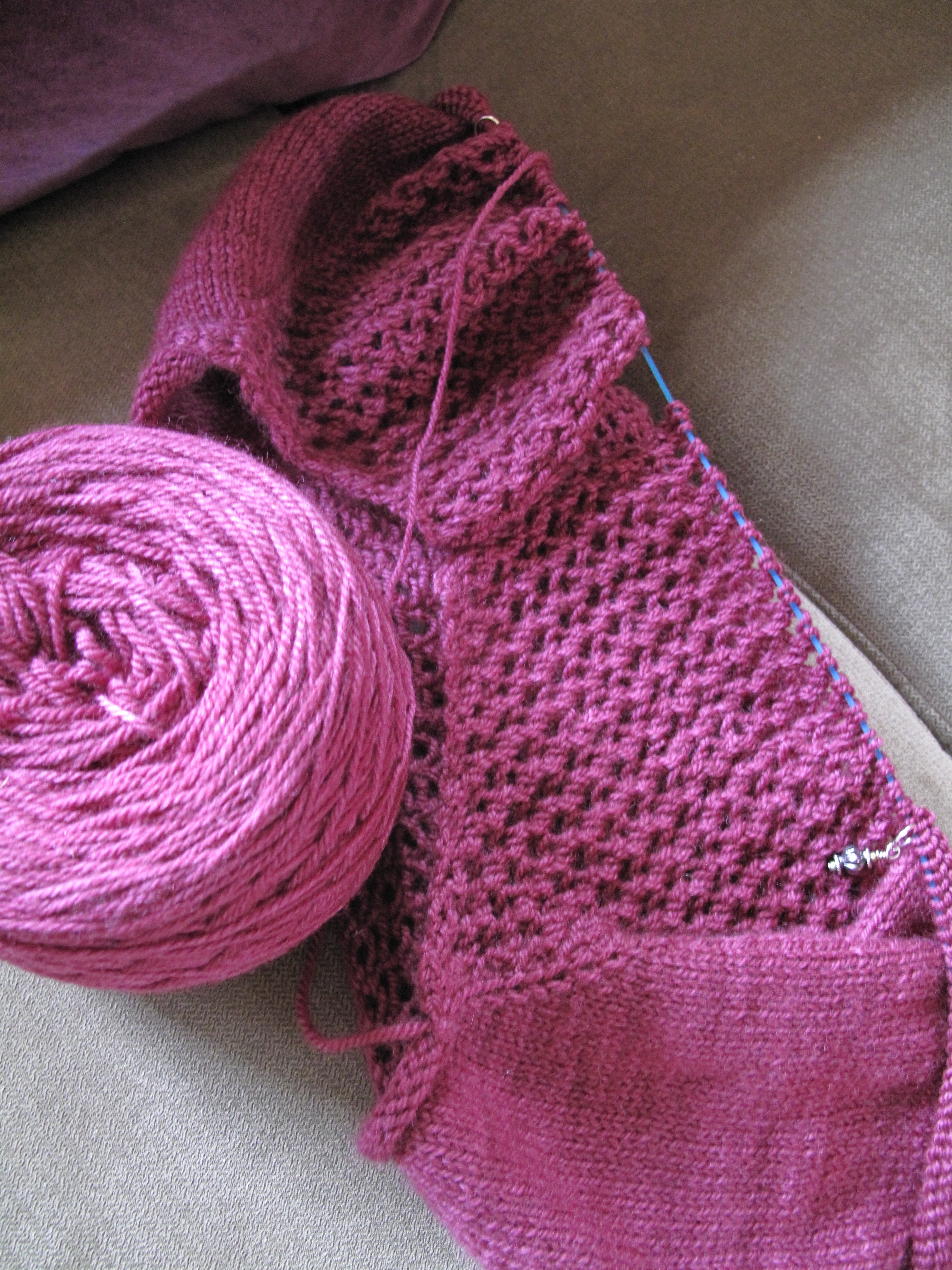 And I’ve been knitting on my Grace cardigan by Jane Richmond. The yarn is Lisa Souza’s organic merino, and I’m so in love with it. It is yarn that I bought at Stitches West and I’m so excited to have a lasting souvenir of the event.