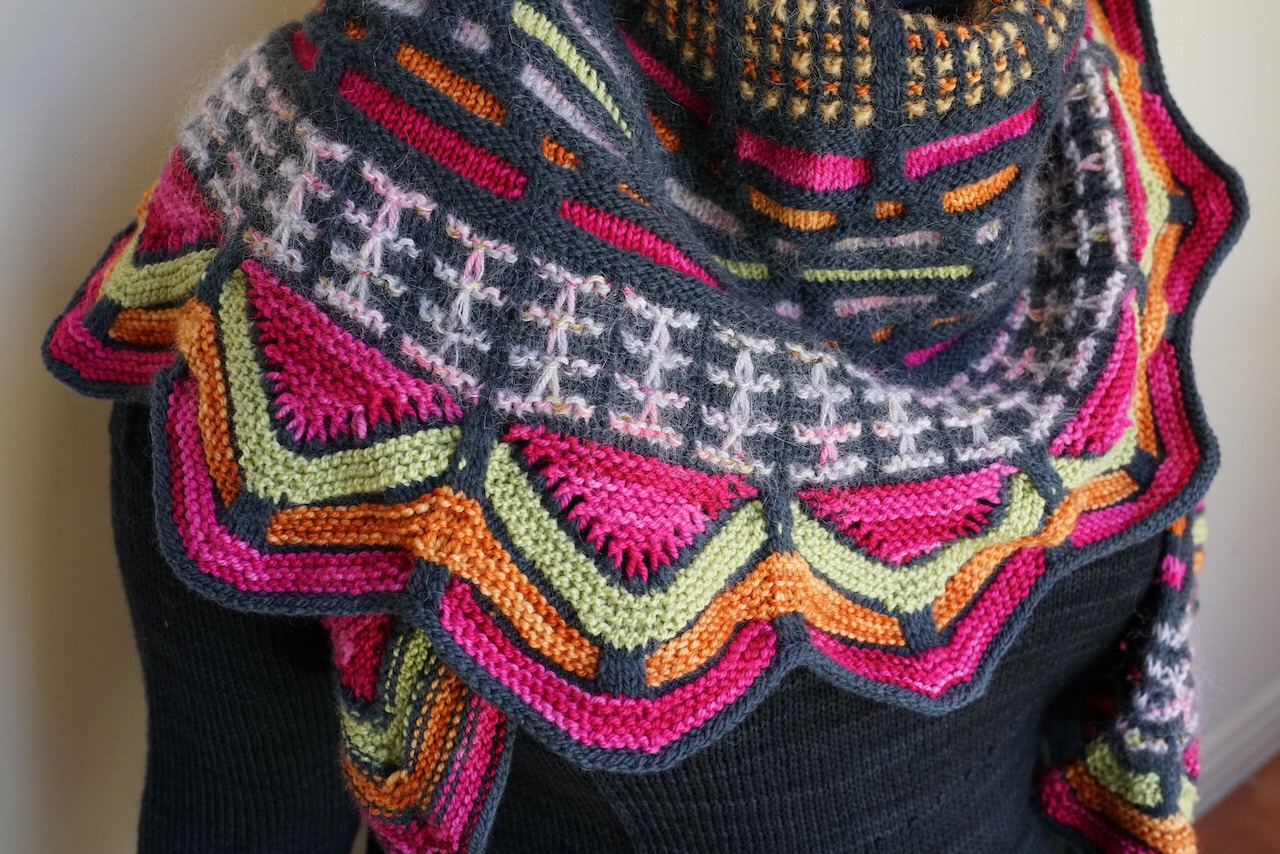 A few distractions occurred in my plans to cast-on and knit a sweater and a pair of socks each month this year. In my birthday month, I also decided to begin a crochet blanket that I long, longed for. And that ‘Stephen West’! inspired me to knit this brilliantly colourful shawl in the later part of this year, don’t ask me which month, sense of time is lost on this year.