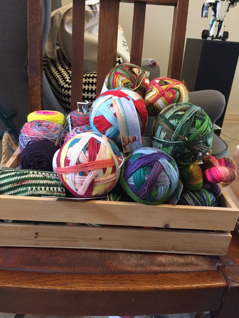 There’s enough yarn in here for 18 pairs of socks. I love having this set out in my living room like this, I find it so inspiring. Even if they don’t all get turned into socks this year, they bring me joy to just ponder.