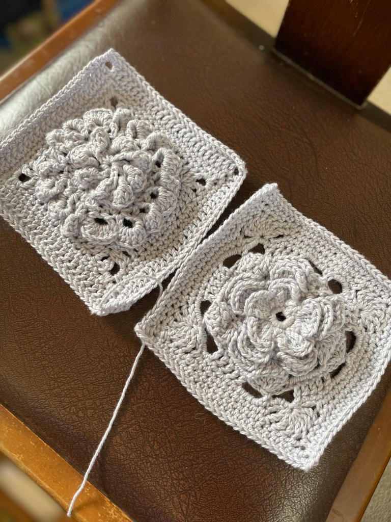 My knitting group the Richmond Knitters, contributed the major prize for Zigo Zago’s annual Bendigo raffle this year, and I squeezed in some time to make a couple of patches from Shelley Husband’s Granny Square Flair book. I’ve always wanted to know how to crochet 3D patterns, and now thanks to Shelley’s instructions I’ve done it.