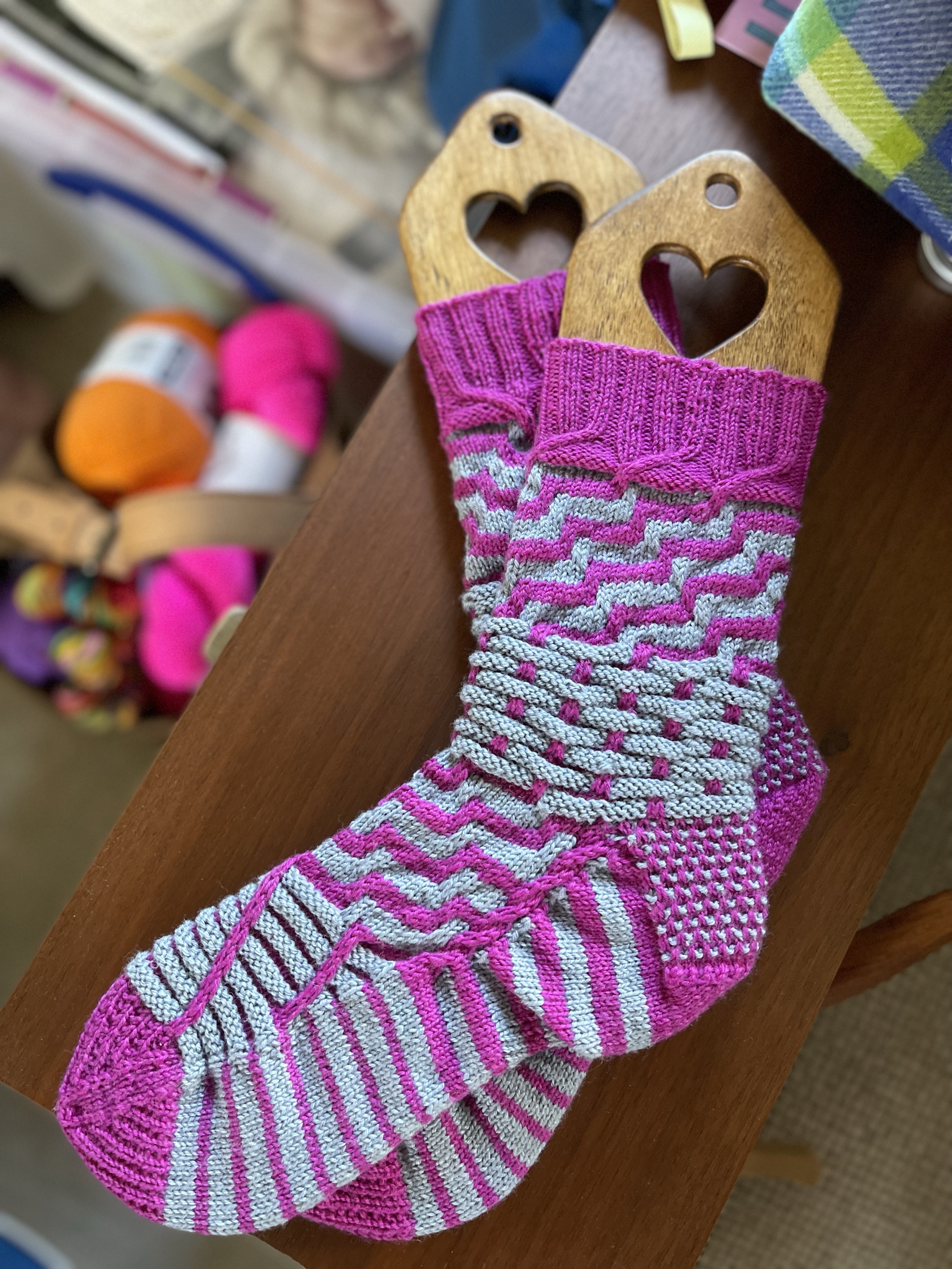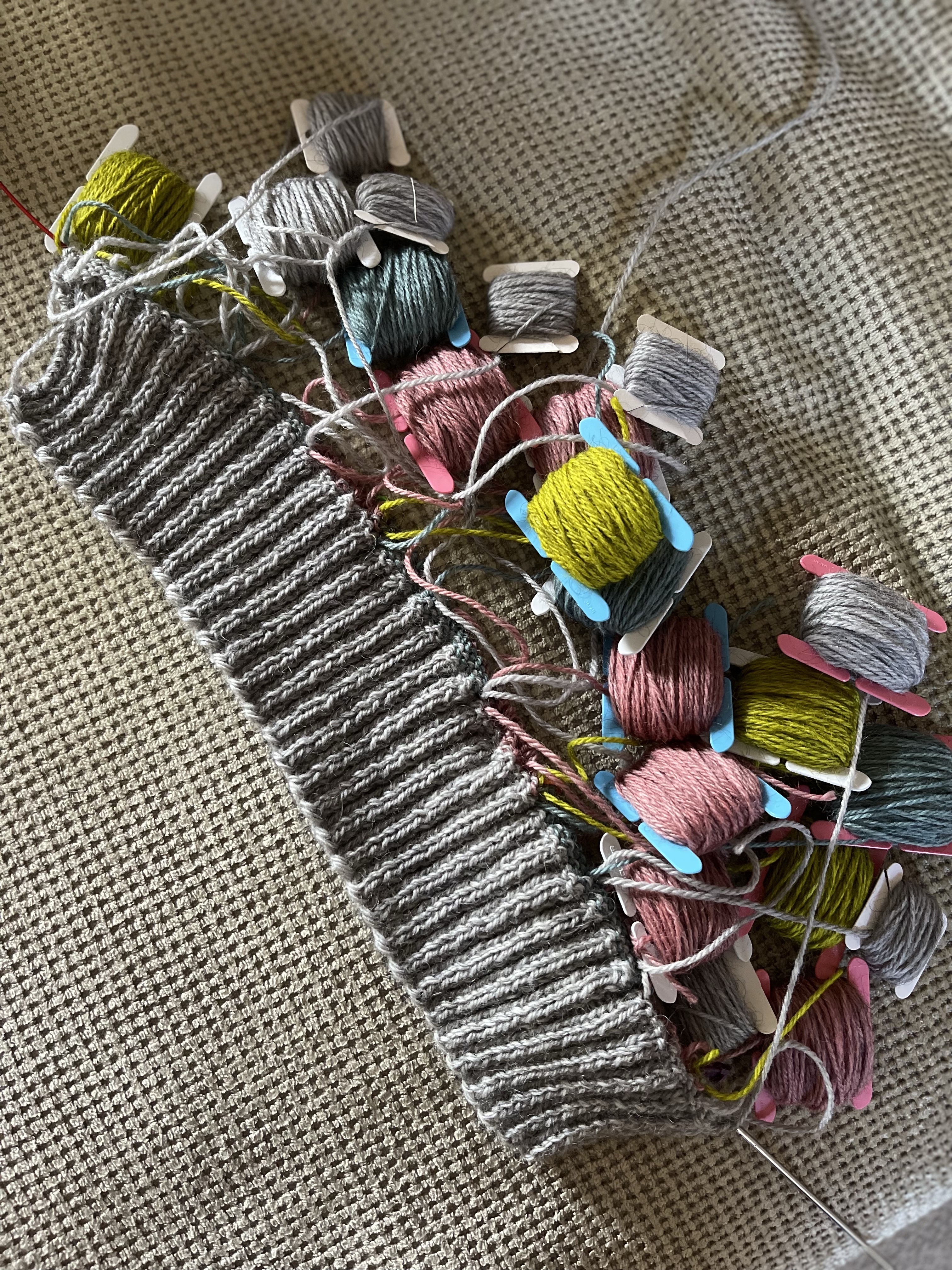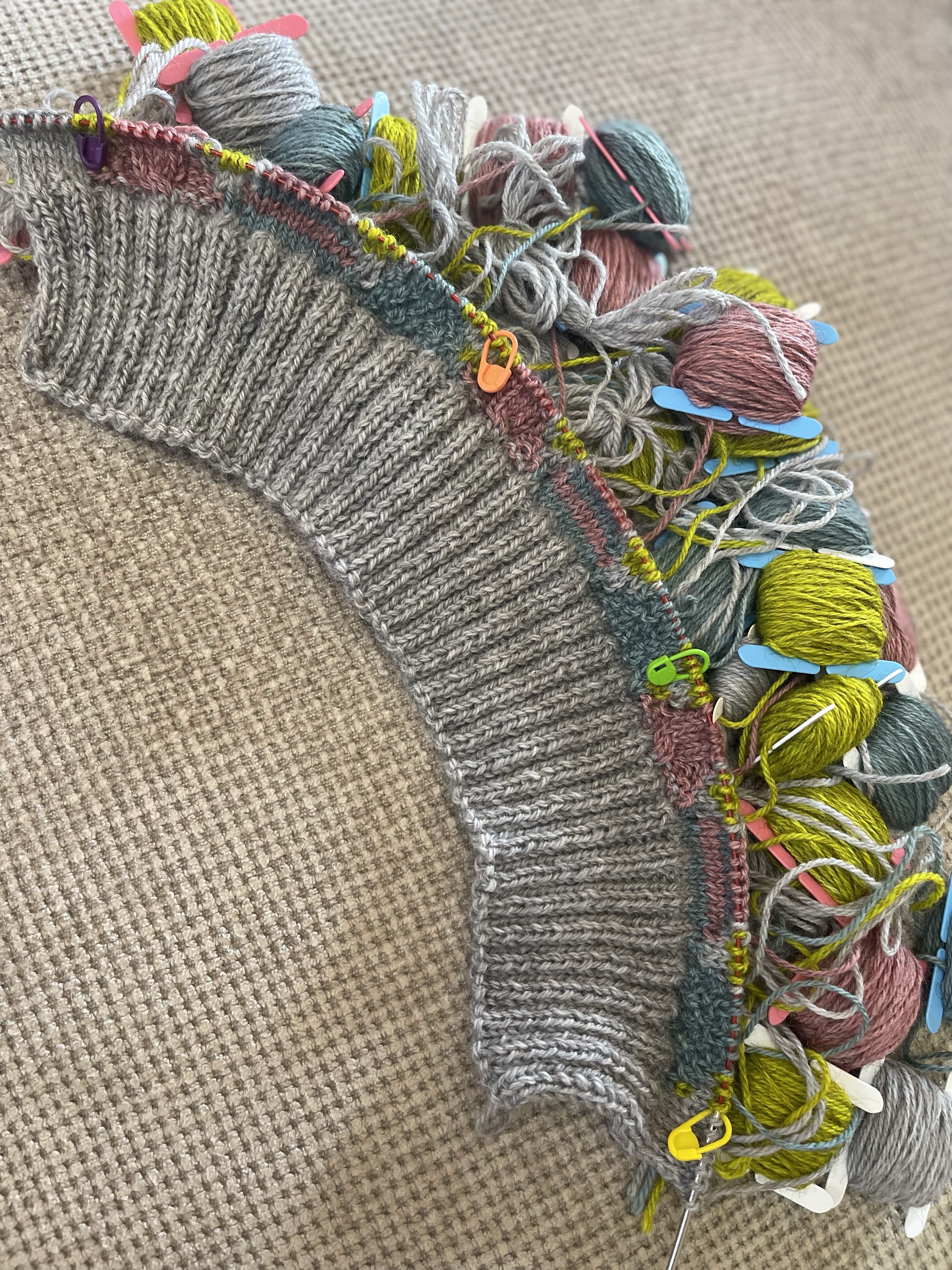Despite my little progress, I’m having fun. It feels like I’m painting with my stitches, I love using colour in my knitting, even though these are the exact colours assigned in the pattern. I’m starting to think about my next projects… better press on then.