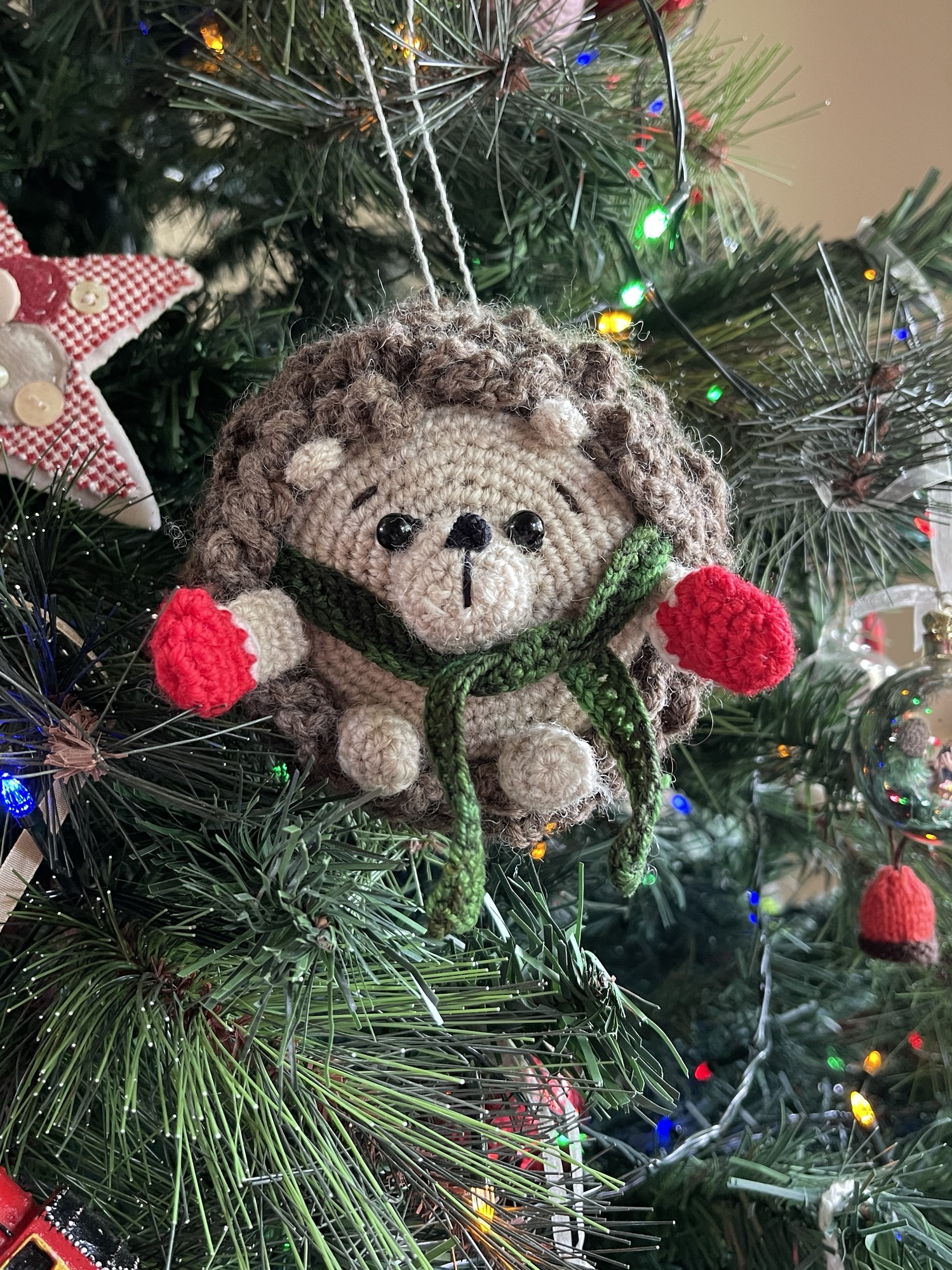 But before I go ahead, I wanted to share the completed hedgehog ornament with CA and you all. It’s even cuter with a face!