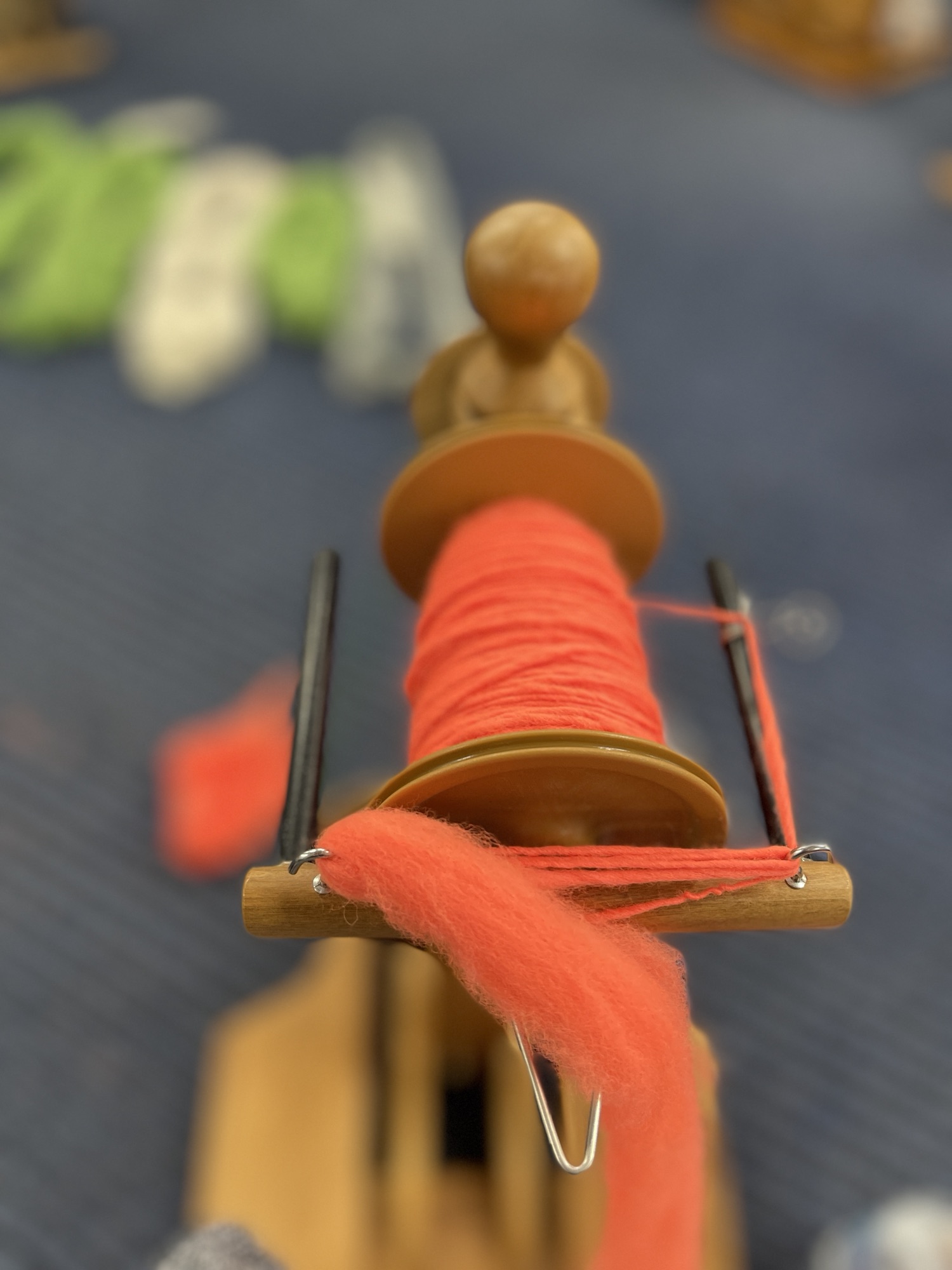 Now I’m normally not a fan of singles yarn, but Janet has made me a bit of a convert… or at least I’m prepared to include spinning singles as an option for making yarn in the future. The class was over 2 days, which was a luxurious amount of time to take in all the knowledge that Janet so generously shares with her students. If you ever have an opportunity to take a class with Janet, I would highly recommend it. I’ve left the class feeling inspired and also with a new spinning project on the wheel.