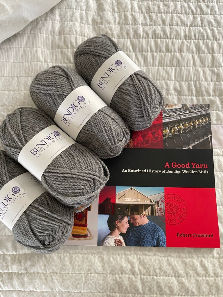 As usual, we headed up early on the Wednesday. We had brunch at our favourite cafe, the one that serves tiny chocolate teddies with your coffee! I visited the Bendigo Woollen Mills, and bought a jumpers worth of yarn; Cumulo which is a limited edition NZ Perendale, non-superwash. I also bought their beautiful publication which was released last year about the history of the mill.