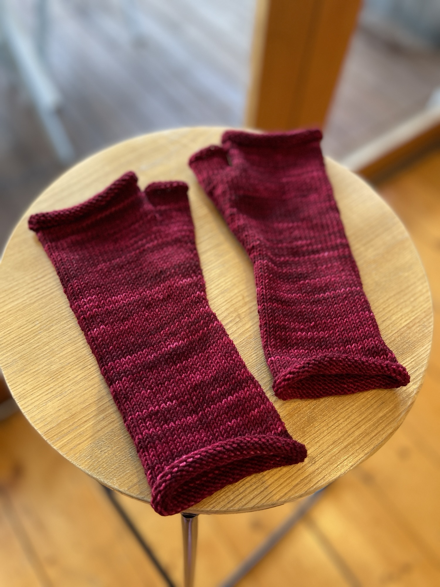 Pictured above are the Penny gloves (mitts) by Petite Knit, that I finished knitting on Thursday afternoon. For the show, I also knitted a colour sample of a beanie for my friend Danni aka HalfBaked hand-dyed. And because this was a sample for the show, I knit another version of the Bendigo Beanie by Sanna & Co. for me. The weekend, turned out to not be too cold with lots of sunshine, which was wonderful. Which meant, I didn’t need to wear my mitts for much of the time; and when my friend Sharon (a second Sharon) turned up on Saturday wearing a store bought beanie, I immediately gifted her my Bendigo Beanie. It looked great on her!