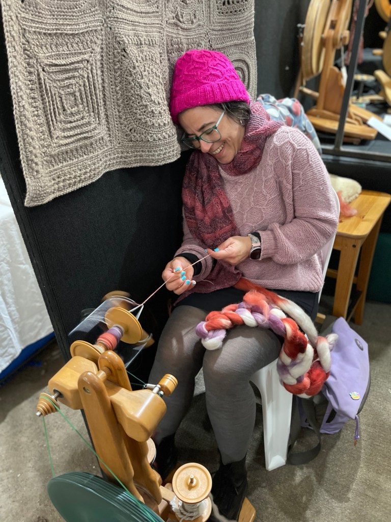I thought that would be my one and only trip to the mill for the weekend, but I was very wrong. I also visited on Friday after the show, as they had just released a limited-edition Corriedale wool. I was very tempted, but walked away empty-handed. I also visited on Saturday after the show, to assist our friend Charlotte (it was manic, I’ve never been there whilst it’s that busy). Charlotte has never been to the mill, she bought a few balls and left very happy. Now I know why it’s smart to go early in the week before the hoards of crafters arrive in town.