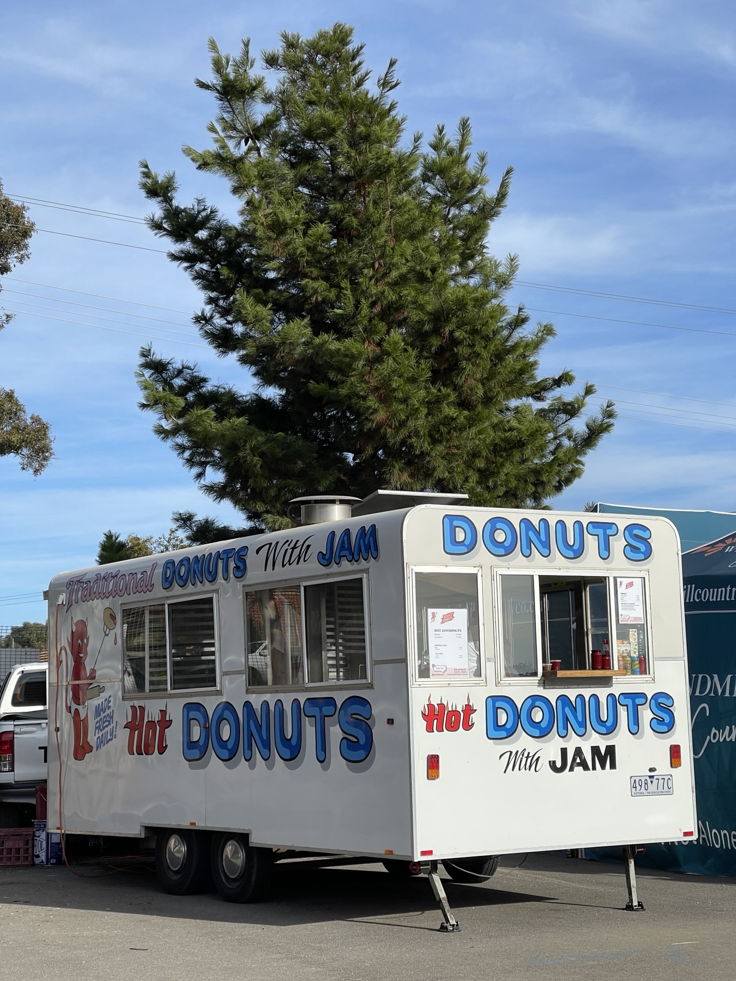 On Saturday, I did a spot of shopping and ate my first Bendigo Hot Jam Donut. Our non-crafty friends arrived (except for Charlotte, she’s a mad crocheter) plus Damian’s mum, and I spent the day looking at the sheep, shearing and sheep dog trials.