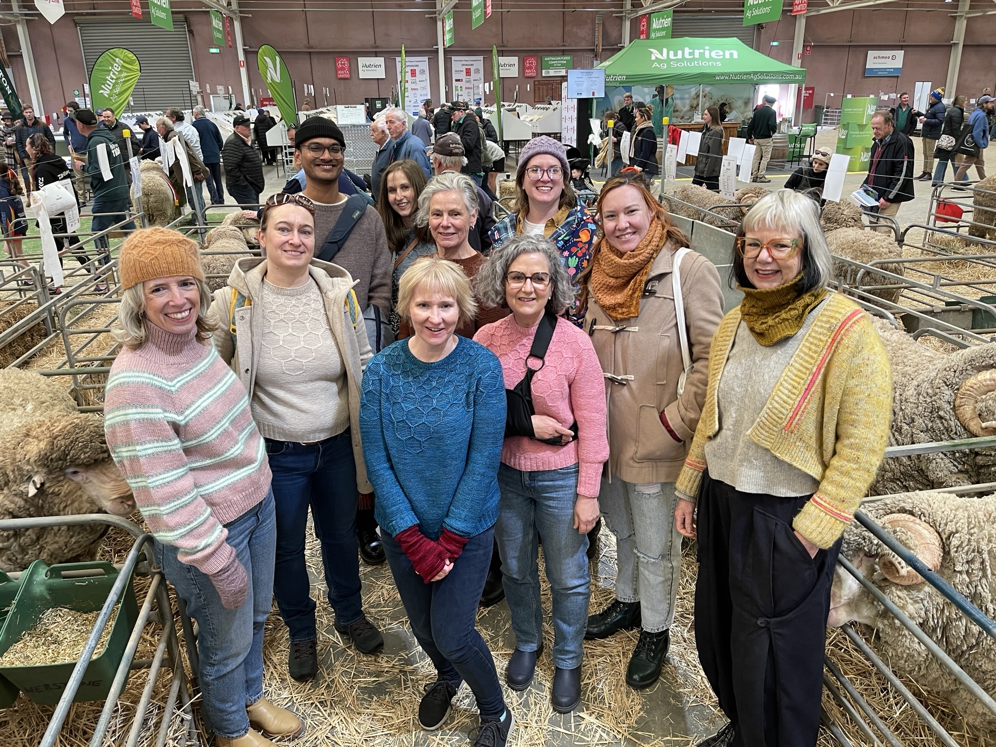 On Friday the show began! In the morning, my knitting group took some group photos of us wearing our Wool & Honey knits and hexagon/bee hive inspired accessories. 10 of us then attended the Women of Wool luncheon, which was fabulous this year.