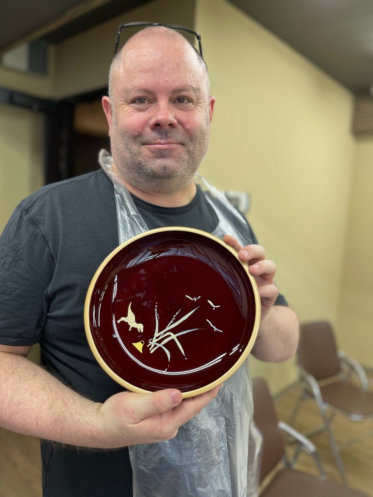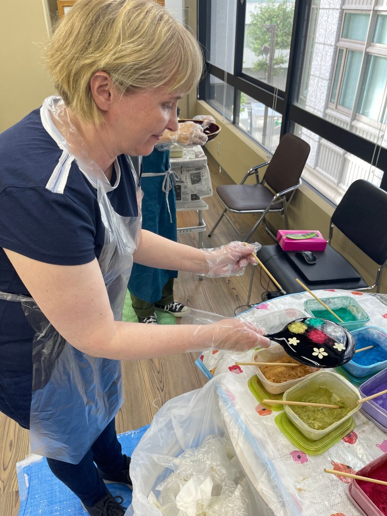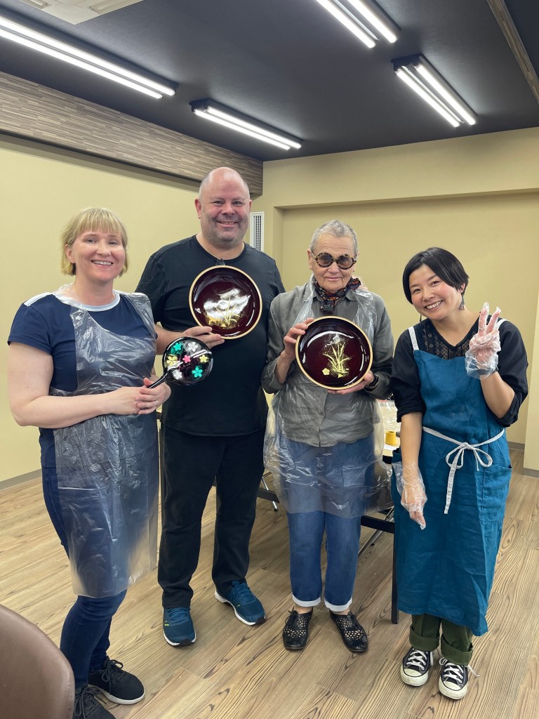We were chaperoning Damian’s mum in our first week in Tokyo. We did a couple of arts & crafts classes, Laquer-Makie painting and making Hanako stamps. Carol also undertook a master class with a Sumie master painter.