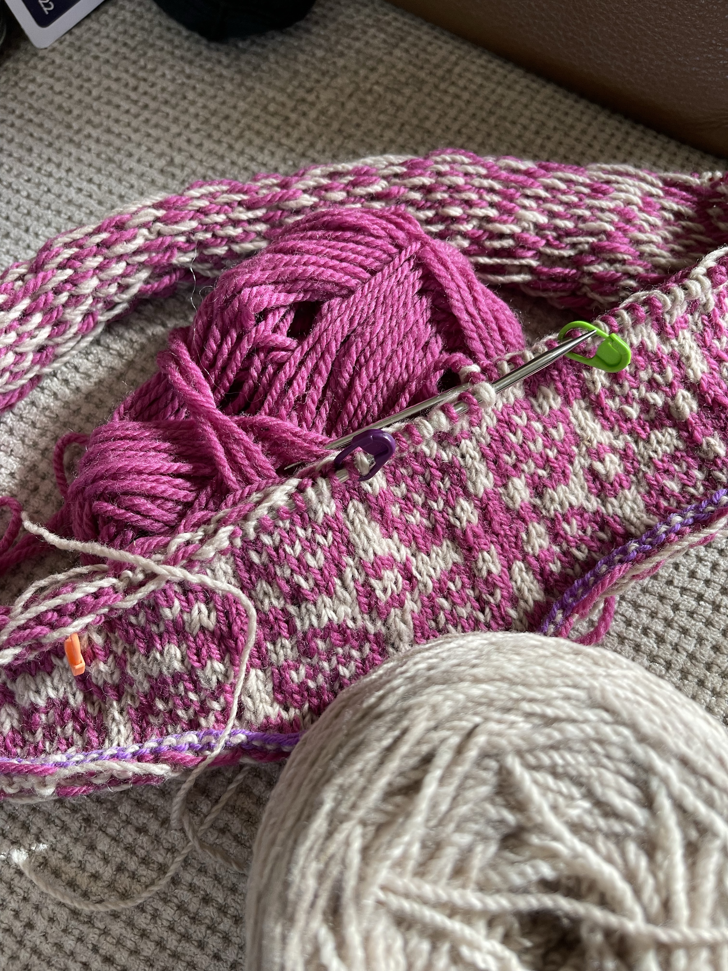 So, I’m changing the Goal Posts I’ve set myself of casting-on a garment per month. For now anyway. I’m going to finish the 2 WIPS I need for the Show competition instead!